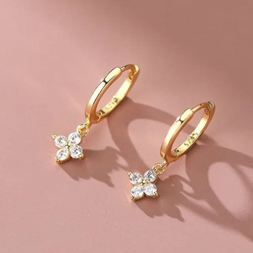 Gold Flower Drop Pendant Huggie Hoop Earrings