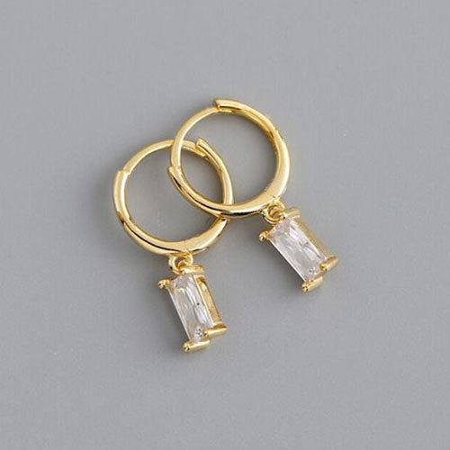 Gold Rectangle Charm Drop Pendant Huggie Hoop Earrings
