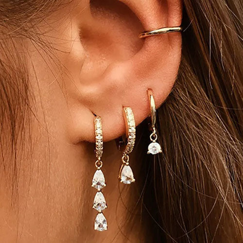 Small Gold Huggie Hoop Earrings With Diamond Drop Charm