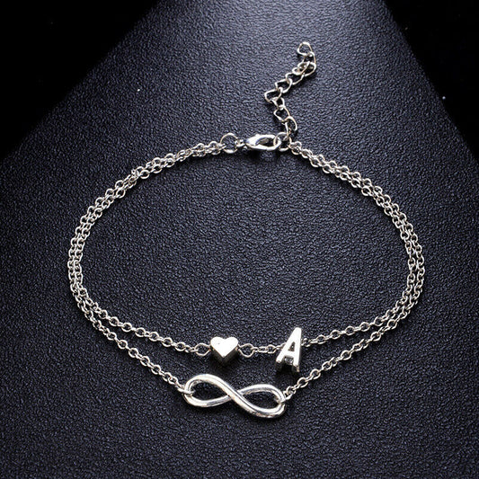 Multi Layer Silver Initial Infinity Bracelet With Heart Charm
