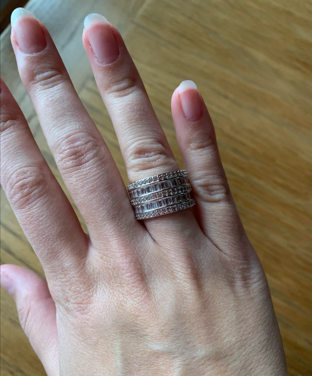 Bring out the bling with this stunning multi-layered sterling silver ring set with layered baguette and round cut cubic zirconia stones. Make a statement with the ultimate layered ring, or treat someone special to an exceptional gift that's sure to really impress.